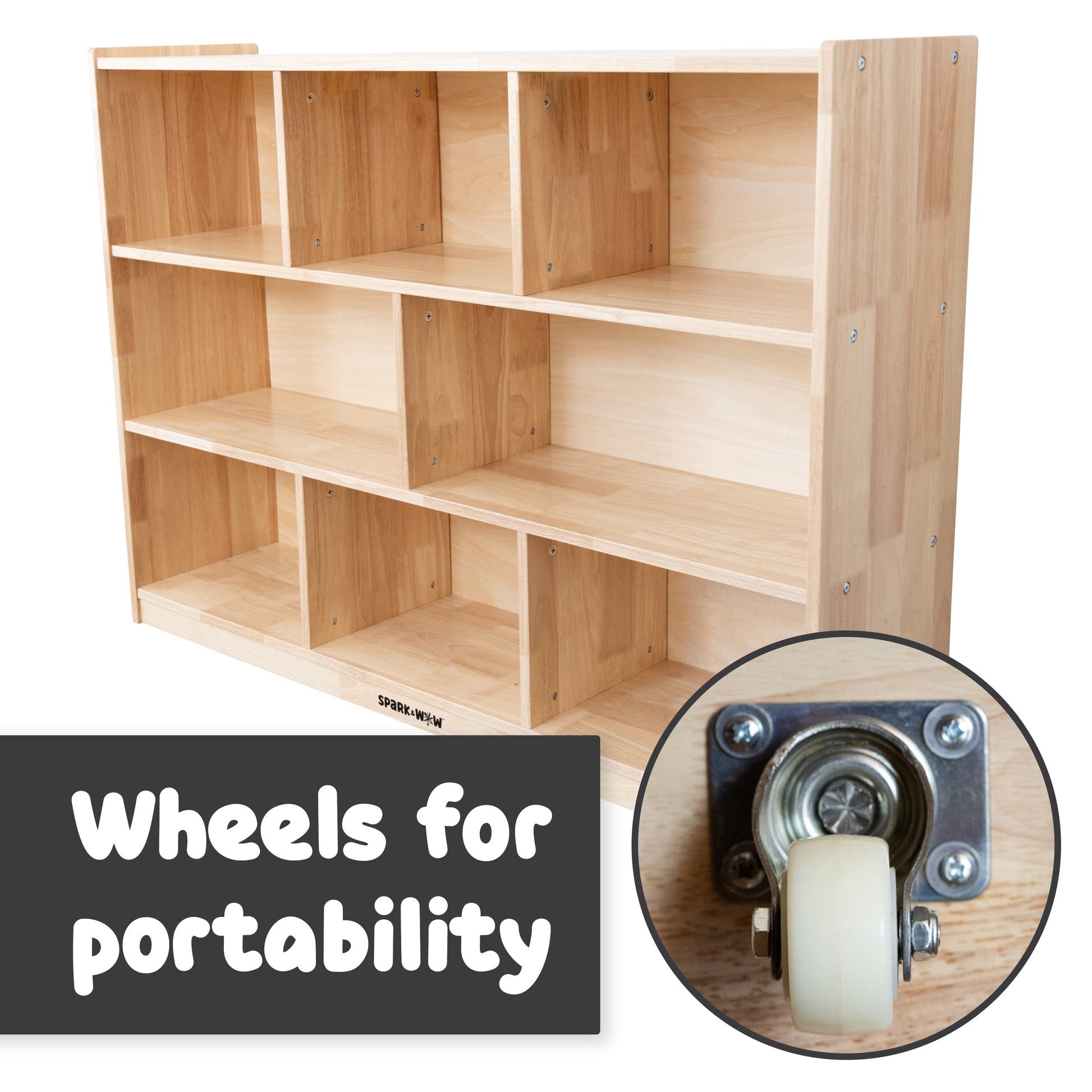 - MADE WITH QUALITY HARDWOOD -- This toy shelf organizer for kids is made from high-quality finger joint rubberwood. It lasts longer than other shelving units, which use plywood, MDF or particle board.