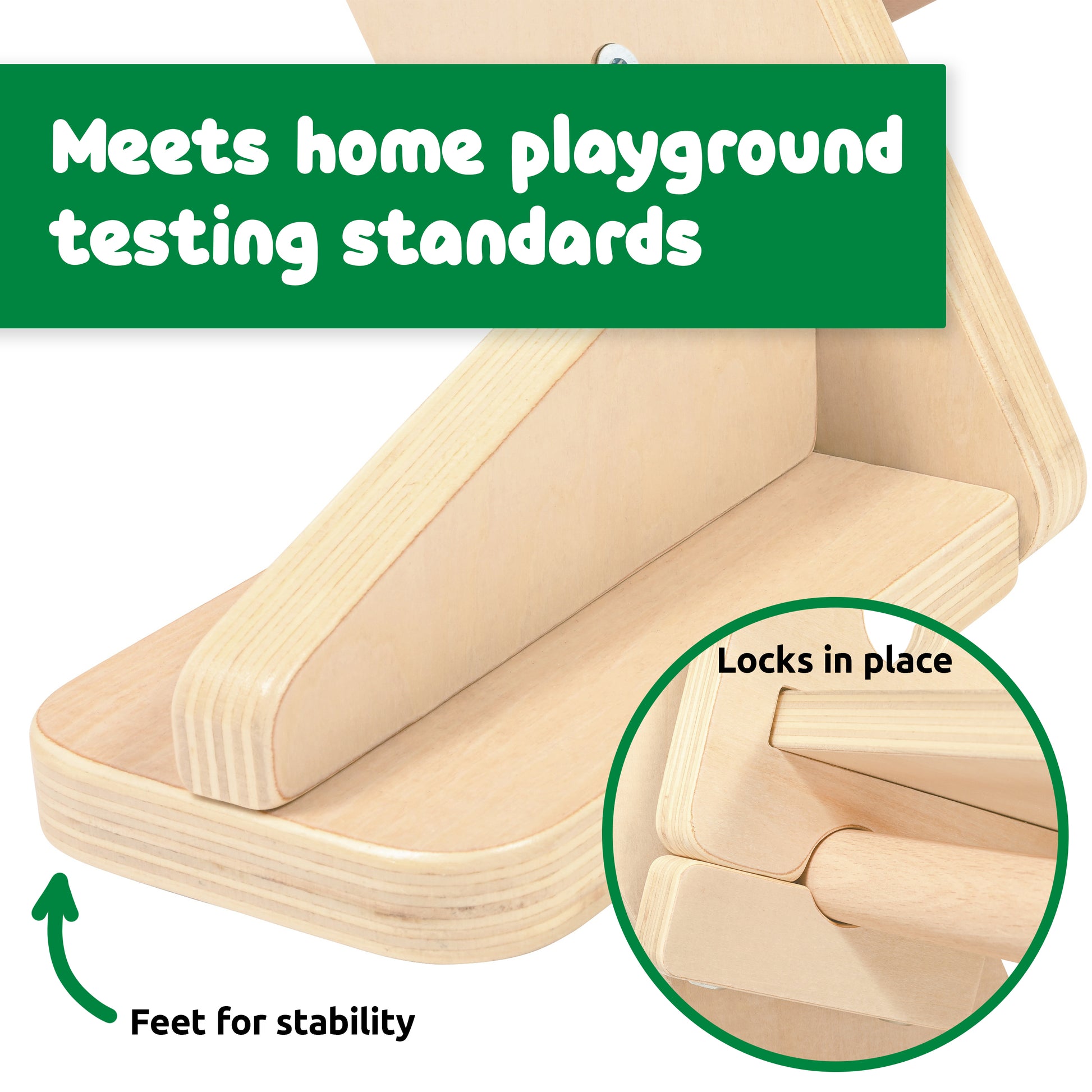 - STURDY DESIGN -- This set is made from solid, durable wood. The locking mechanism and feet will keep all the components stable. Provide a safe environment for exploratory play.