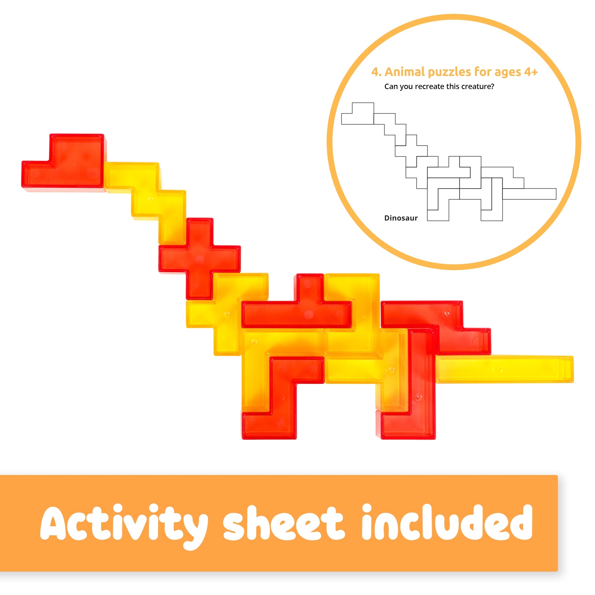 - CONSTRUCT AND EXPLORE -- Stack blocks to build towers. Or, slot them together to create larger shapes. They’re a perfect first puzzle for your little ones. Check out our activity sheet for more ideas!