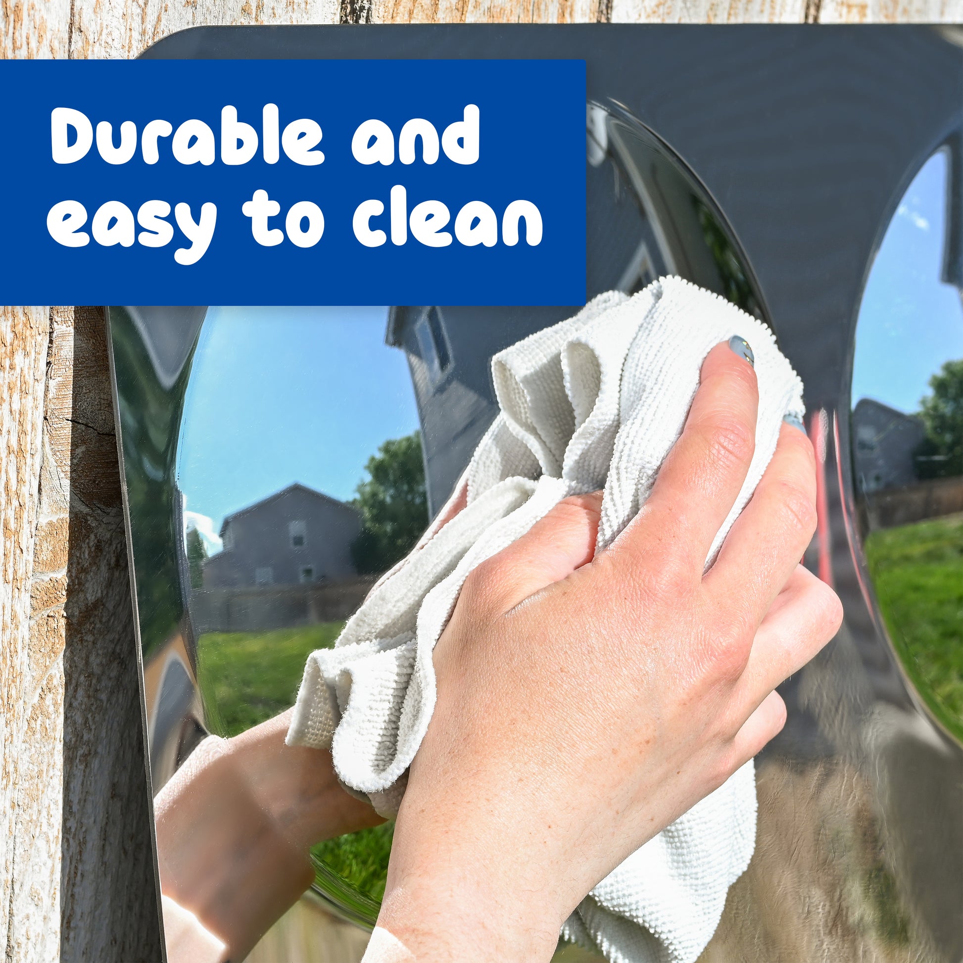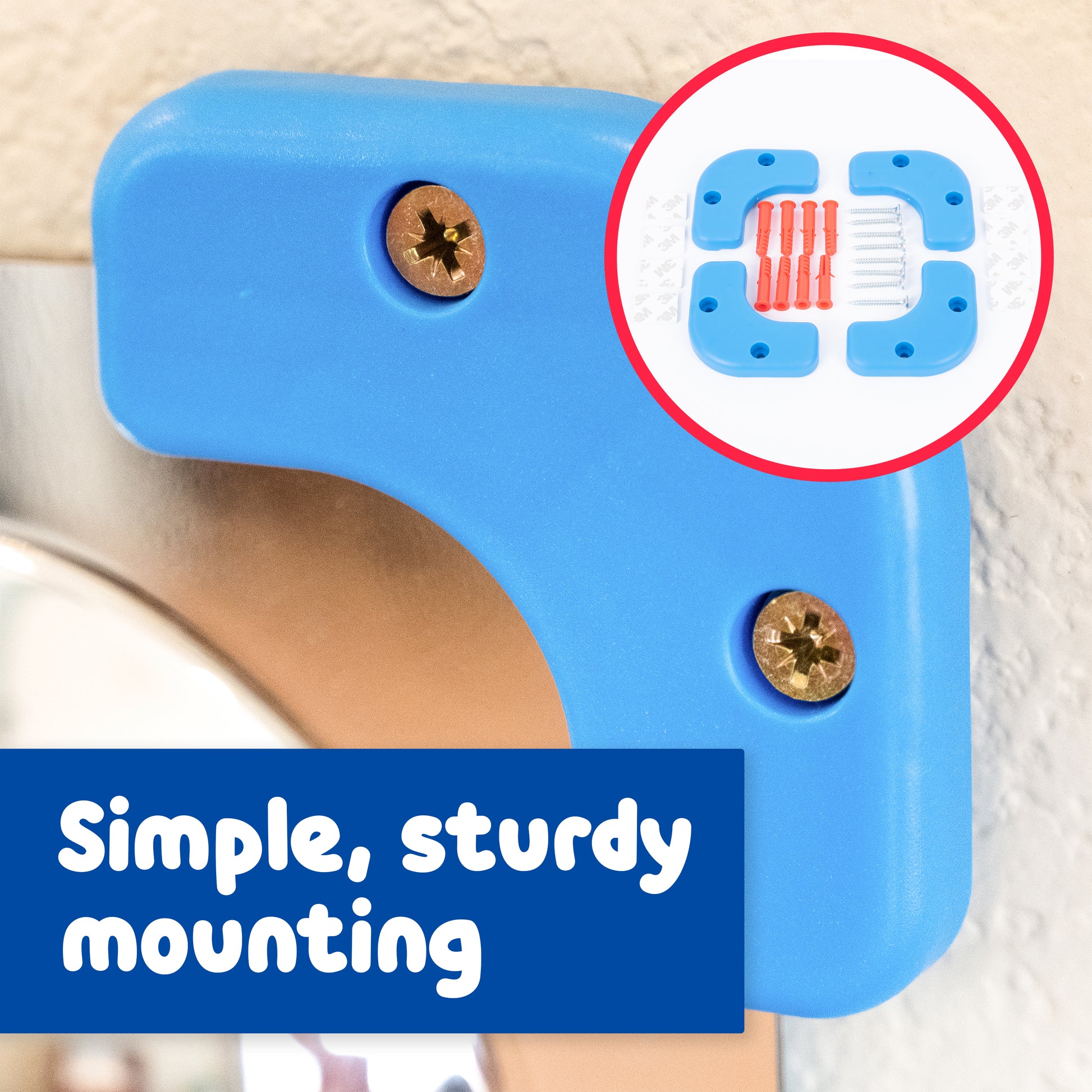 - DESIGNED TO LAST -- This mirror is made of durable, easy-to-clean acrylic. Toddlers can touch its smooth surface without causing damage. And parents can easily clean it with soap and warm water.