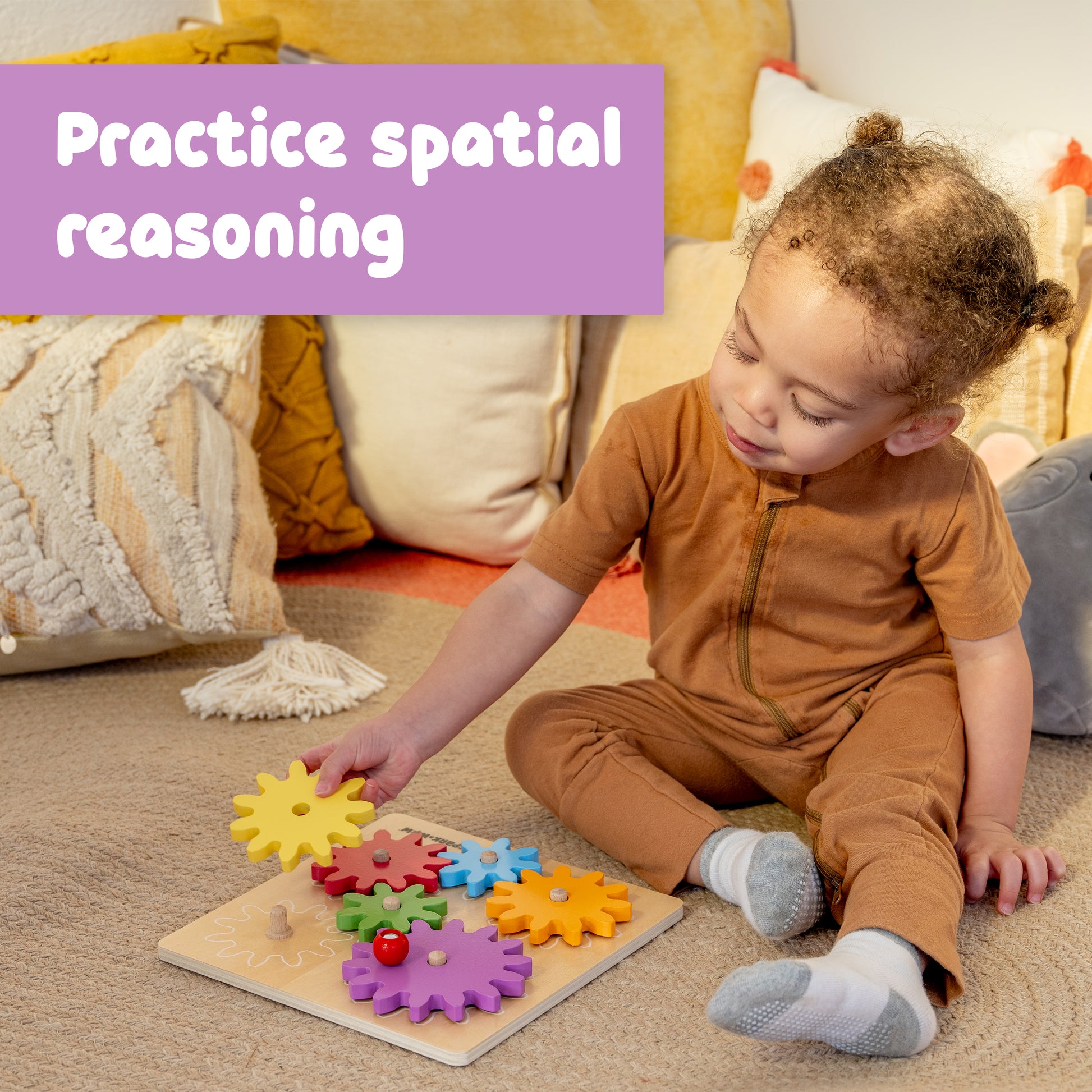 - DEVELOP INTENTIONAL PLAY -- Explore cause and effect, color recognition, problem solving, and more. This gear puzzle is excellent for introducing toddlers to early STEM concepts and intentional play.