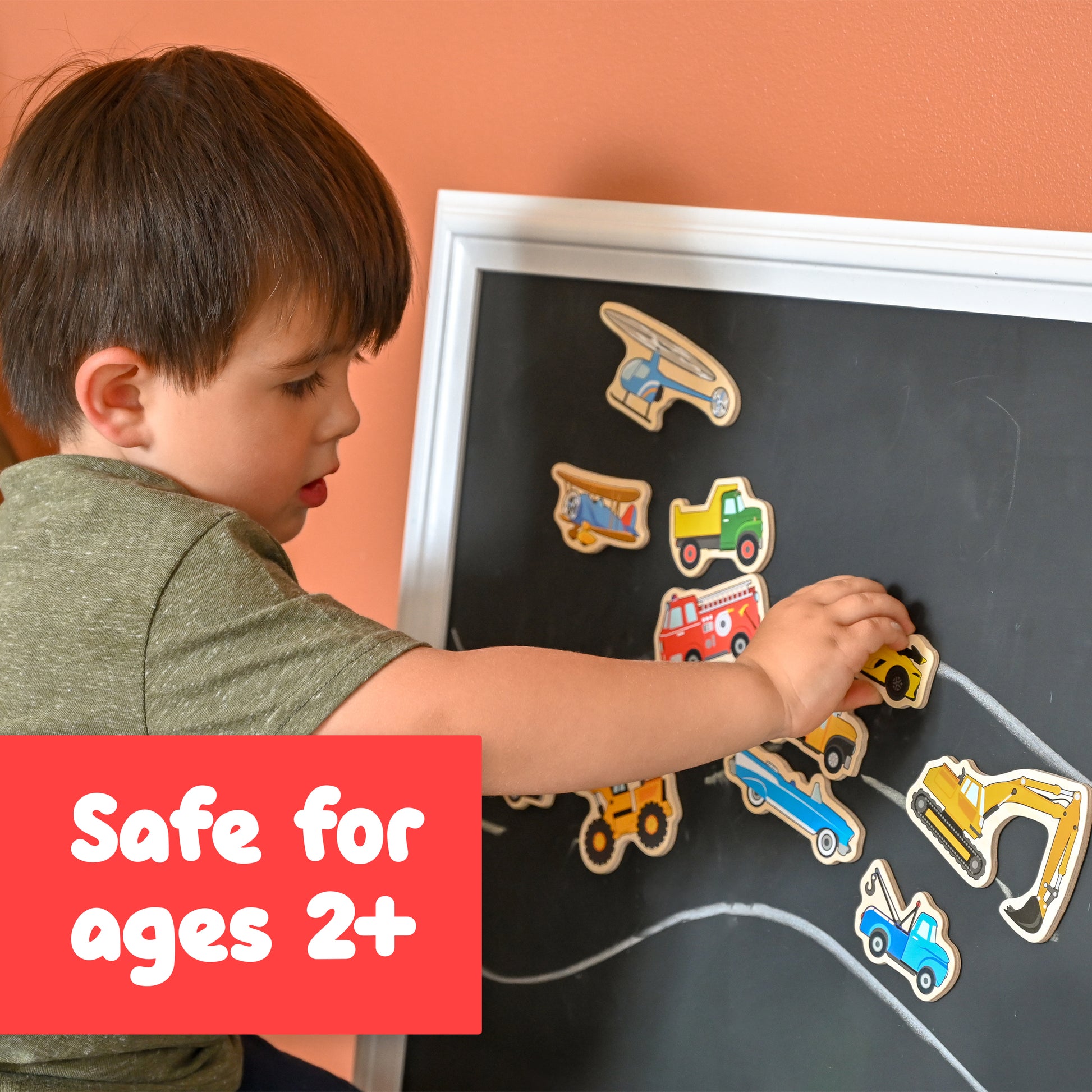 - DURABLE, KID-FRIENDLY DESIGN -- The magnetic backs on the pieces are securely cut to shape and glued on. No small magnets! They’re made of smooth, durable plywood and are safe for small hands.